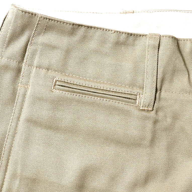 | 商品説明 | 1940年代のトラウザーをモチーフにしたミリタリーチノパンツ。定番のタンカースジャケットでも使用されている30/2ウエポン生地を使用し、スタンダードで汎用性の効くラインが出るようになっている。フロントは使いやすさを優先しファスナー仕様に。 |