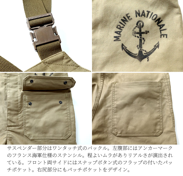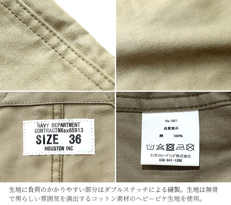HOUSTON/ヒューストン1921FRENCHDECKPANTS/フレンチデッキパンツ-全3色-コットンオーバーオールヘビーピケミリタリーMILITARYステンシル日本製メンズ大きいサイズポケット前開き[1921]