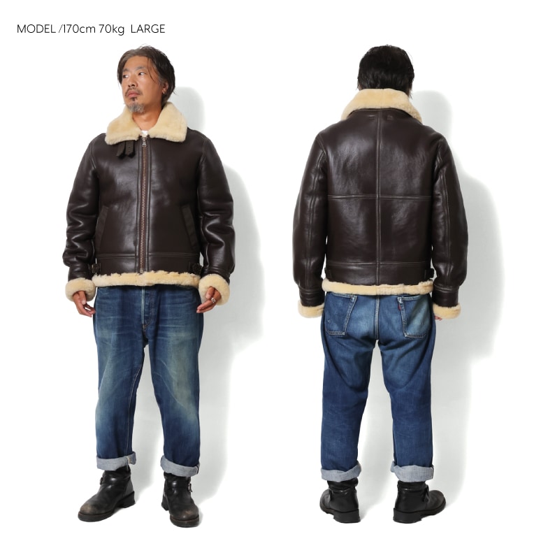 | 商品説明 | ムートンを使用したフライトジャケットの中でも代名詞的な存在でもある「B-3 FLIGHT JACKET」。1934年頃にアメリカ陸軍航空隊で冬期・寒冷地用として採用されたこちらのジャケットは、保温性・耐寒性を第一に優先して開発されたため、内側全体にムートンボアが張られているのが特徴的で、保温性の高さが魅力的な一着。 すっきりとしたシルエットとなっており、着用時には内側のボアがフィットし着心地も良く、見た目以上のフィット感を体感できます。 |