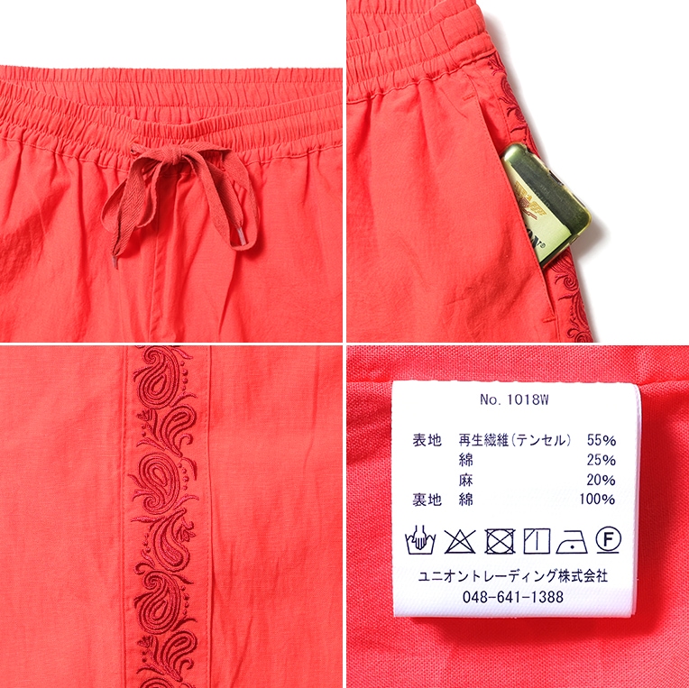 | 商品名 | HOUSTON woman/ヒューストン ウーマン 1018W EMBROIDERY EASY PANTS / 刺繍イージーパンツ |