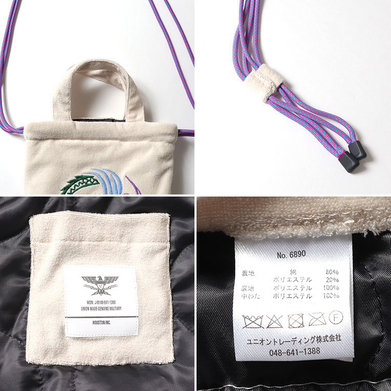 HOUSTON / ヒューストン 6890 EMB PILE EFFECT BAG (DRAGON) / 刺繍パイルエフェクトバッグ -全3色- メンズ レディース 男女兼用 手提げ袋 ショルダーバッグ ロゴ 肩掛けバッグ 巾着 2WAY MILITARY ミリタリー [6890]
