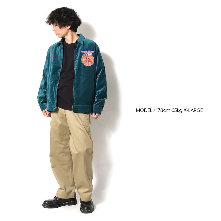 | 商品説明 | FFA(Future Farmers Agriculture)の略で、アメリカの農業国立学校のユニフォームをサンプリング。古着でFFAジャケットは人気と反比例して枯渇化が進み価格高騰してきているアイテム。ソフトな肌触りが特徴的な見た目に、高級感が感じられるヴィンテージライクな印象のコットン別珍を使用。裏地には高級感漂うパープルを採用。 |