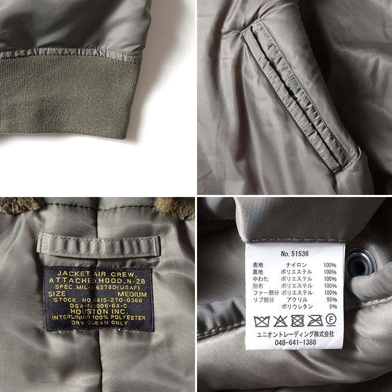 HOUSTON / ヒューストン 51536 N-2B / N-2Bフライトジャケット -全3色- メンズ ファー ミリタリージャケット アメリカ軍 ヘビーゾーン ミリタリー アメカジ ヴィンテージ [51536]