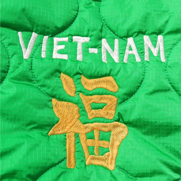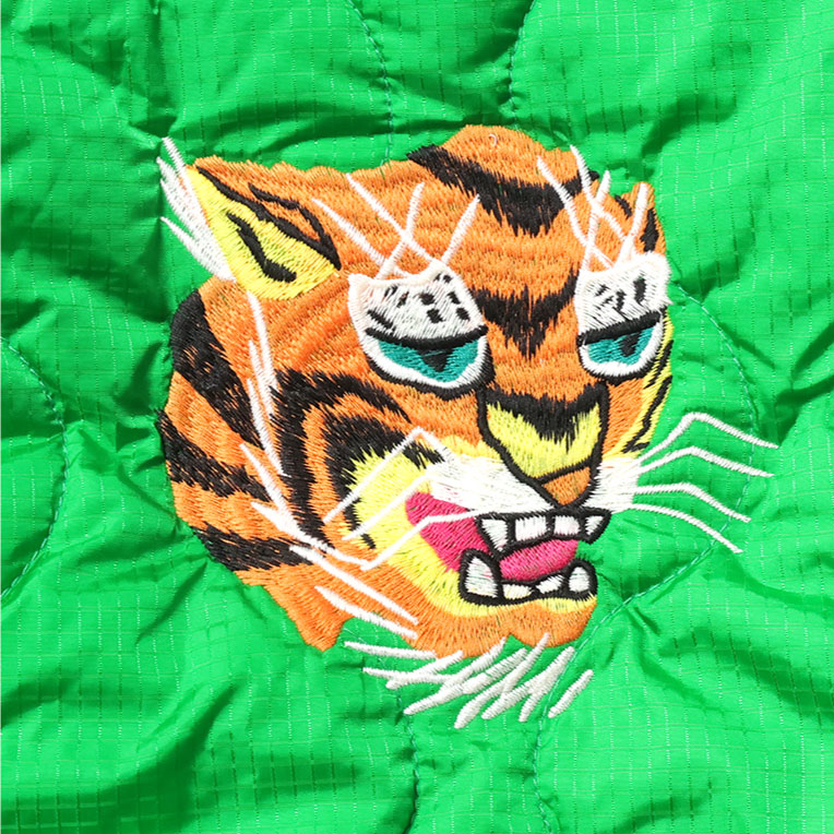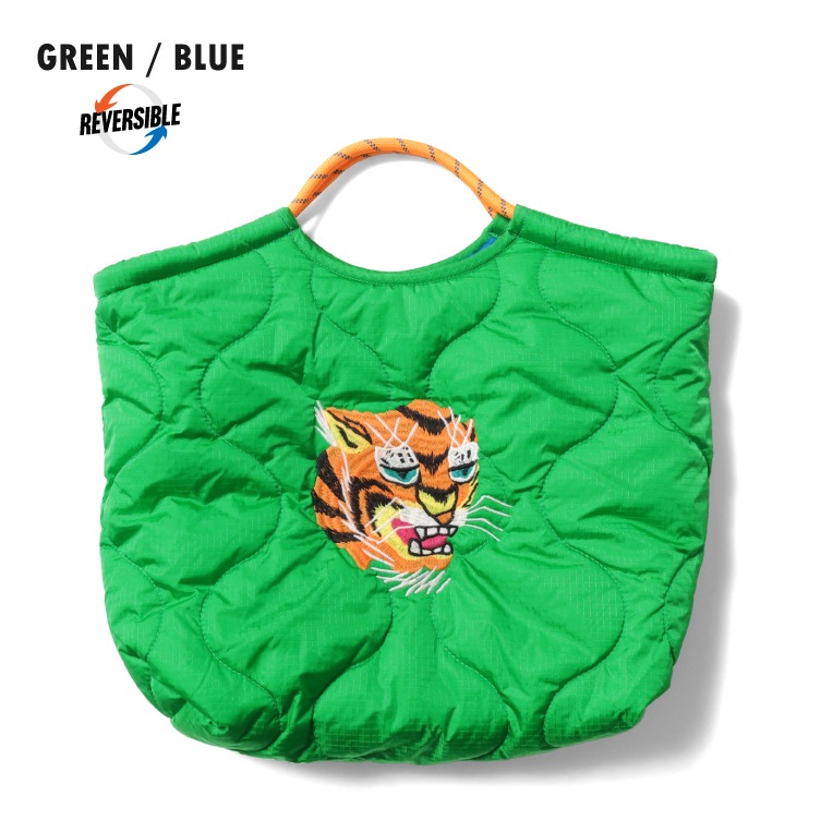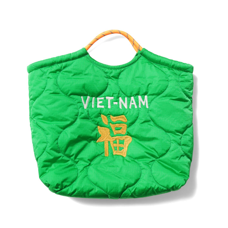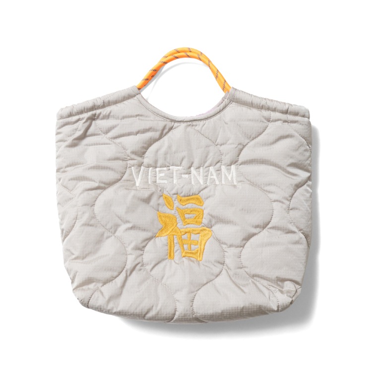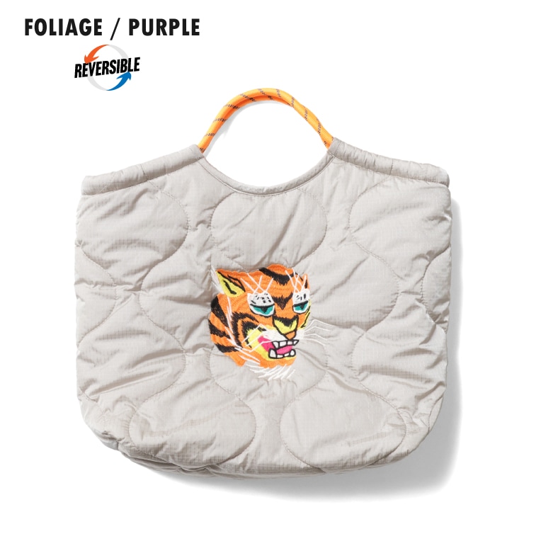 | 商品説明 | 人気の刺繍エフェクトバッグシリーズ。刺繍が施されたひょうたんキルトのナイロン面と、ボア面のリバーシブル仕様。広めのマチが付いているので荷物が多い時にも活躍し、クッション性のある素材の組み合わせが実用性を高めています。刺繍にはベトジャンでお馴染みの虎と福のモチーフを採用。 |