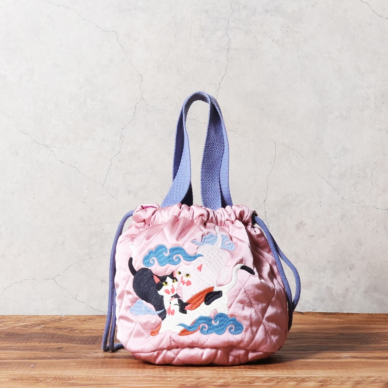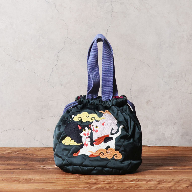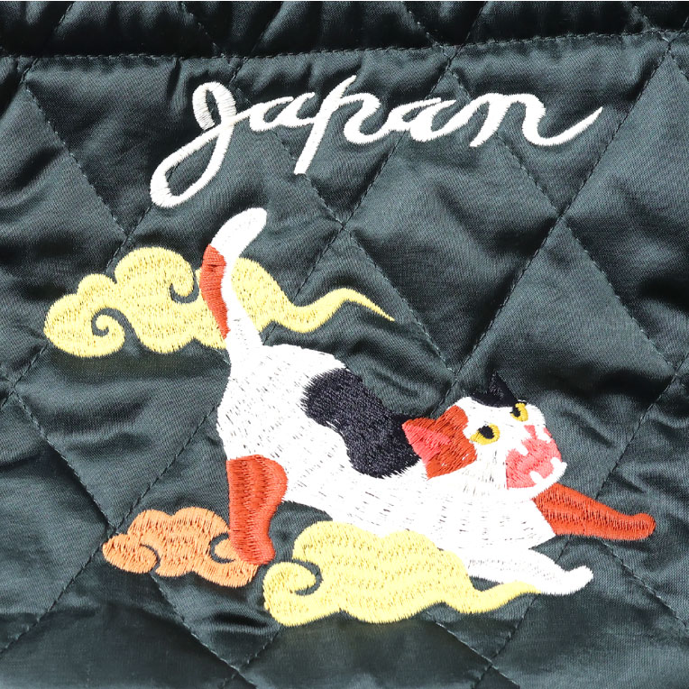 | 商品説明 | 人気の刺繍エフェクトバッグシリーズ。スカジャンに使用しているサテン生地を採用。小さめのサイズ感とダイヤモンドキルトの立体感が可愛らしいフォルムを演出。色々な表情の個性豊かな猫の刺?を施しています。 |