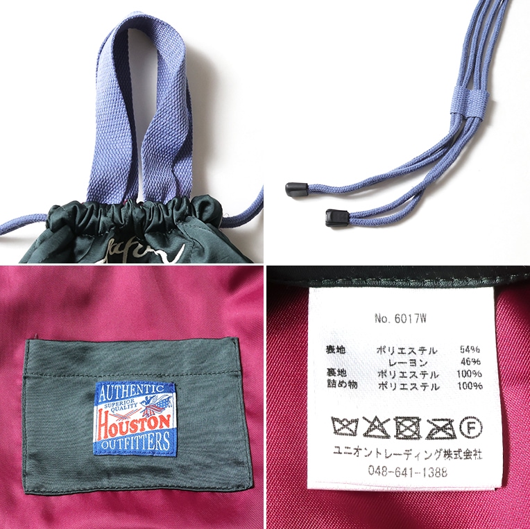 HOUSTON woman / ヒューストンウーマン 6017W SATIN EFFECT BAG (百猫) / サテンエフェクトバッグ -全3色- レディース 手提げ袋 ショルダーバッグ スカジャン ネコ 巾着 2WAY MILITARY ミリタリー アウトドア [6019W]