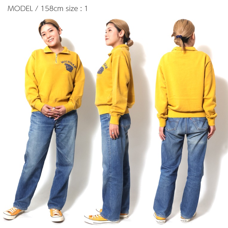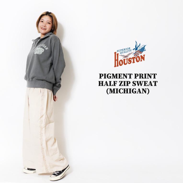 HOUSTON woman / ヒューストン ウーマン 2031W PIGMENT PRINT HALF ZIP SWEAT (MICHIGAN) / ピグメントプリントハーフジップスウェット -全3色-