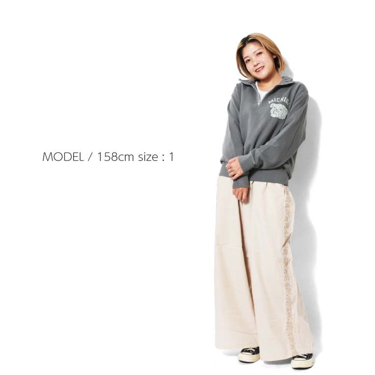 | 商品説明 | 程よい身幅のゆとりがありながら、コンパクトな丈のバランスがトレンド感抜群のハーフジップスウェット。左胸にはカレッジ調のブルドッグのロゴをプリント。ボディカラーはピグメントダイで展開しており、製品染めならではのフェード感が楽しめます。 |