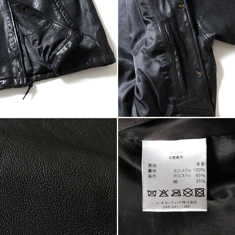 | 商品説明 | 製品洗いを施したシープレザーコーチジャケット。レザーをよりカジュアルに着こなせるデザイン。袖口にリブを採用しているため、よりカジュアルに、より気軽に着用できる。秋口にはデニムパンツやカーゴパンツにも相性良く着こなせる1枚。 |