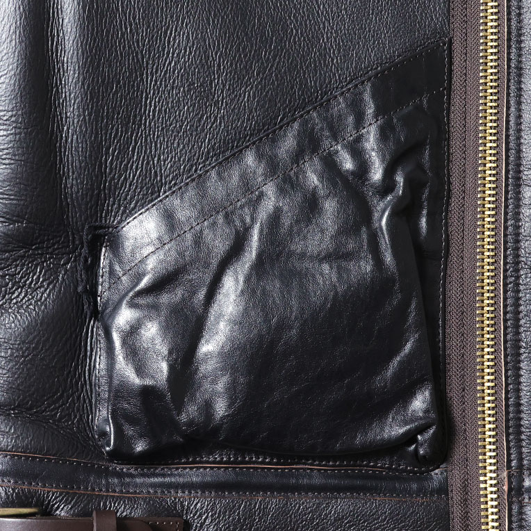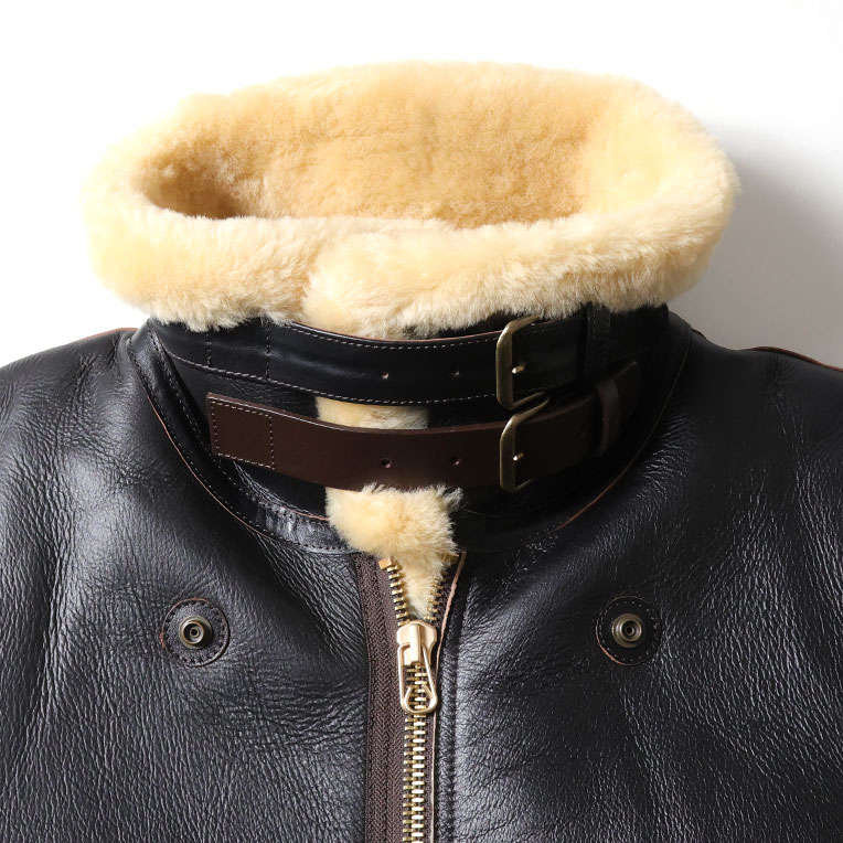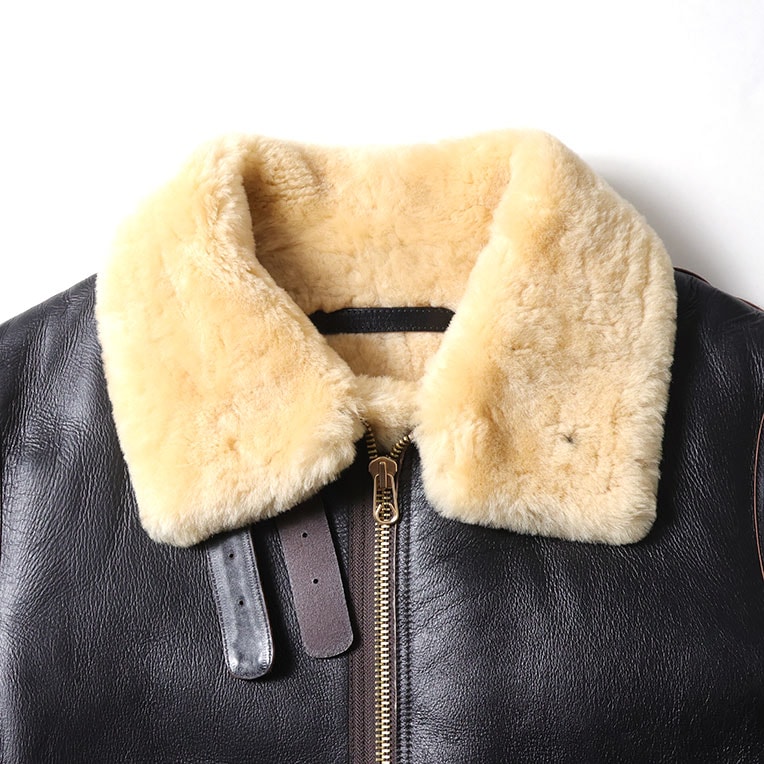 | 商品説明 | ミリタリー防寒レザーの大定番B-3ジャケットのオリジナルデザインの1ポケット仕様。ビンテージ感を楽しみたい方やワイルドな着こなしを好まれる方へお勧めのアイテム。B-3ジャケットは、極寒の空を飛ぶ爆撃機搭乗員の命を守るために作られた防寒フライトジャケットで、近年では、その無骨なデザインと圧倒的な暖かさから、冬のミリタリーファッションの王道アイテムになっている。カラーは経年変化を楽しめるブラウンコアトリム(茶芯)を展開。 |