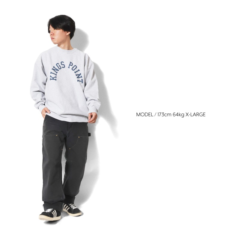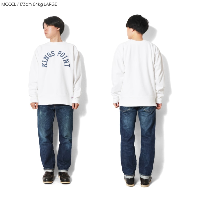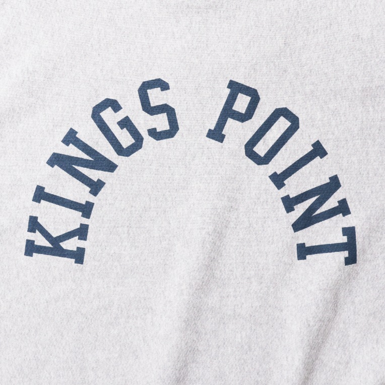 | 商品説明 | 脇にリブ切り替えの入った、裏起毛のリバースタイプのスウェット。贅沢にU.S.コットンを使用して編み立てています。ミリタリーリバースの名品、KINGS POINTのロゴを、インクの浸透率を上げた、超染み込みプリントで再現しています。KINGS POINTとはニューヨーク州にあるUSMMA(アメリカ商船士官学校)のある地名です。スウエット スエット |