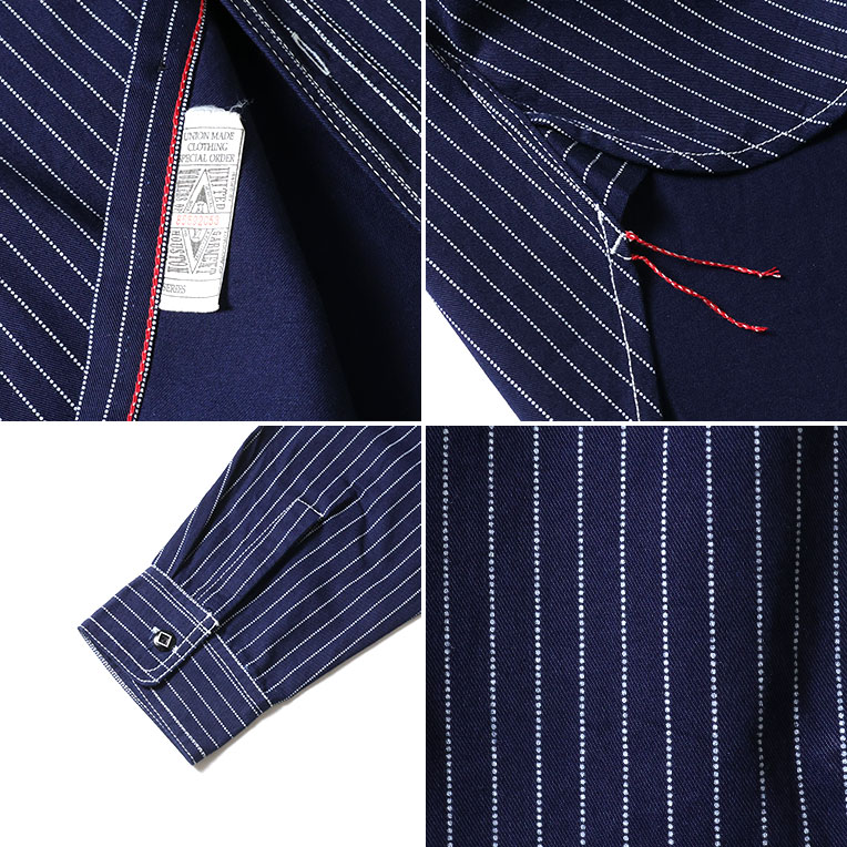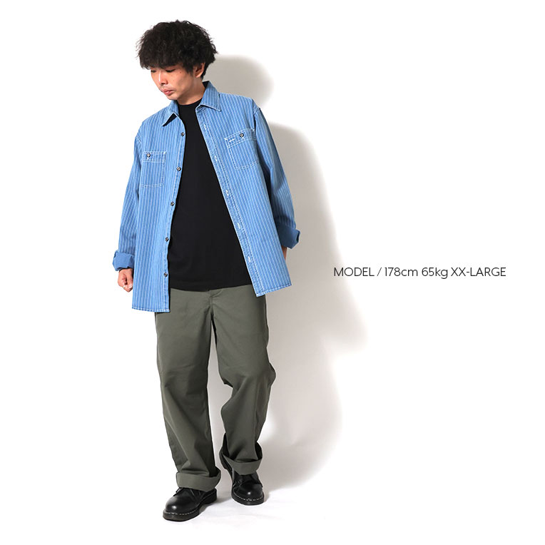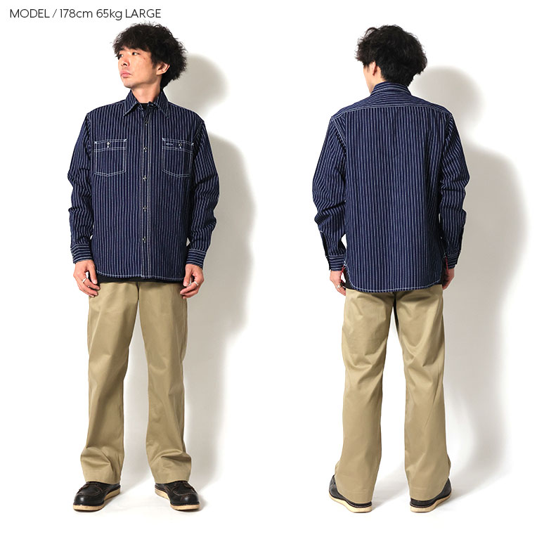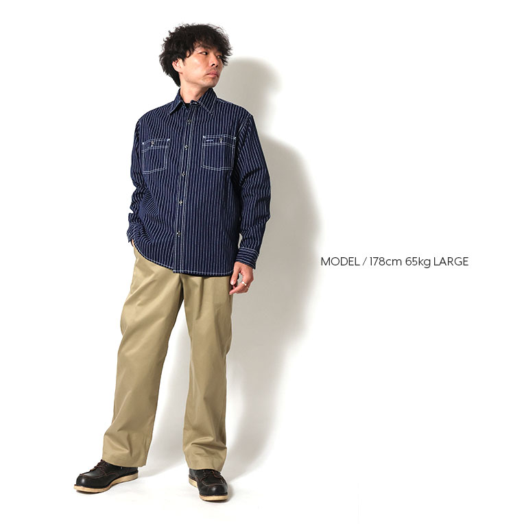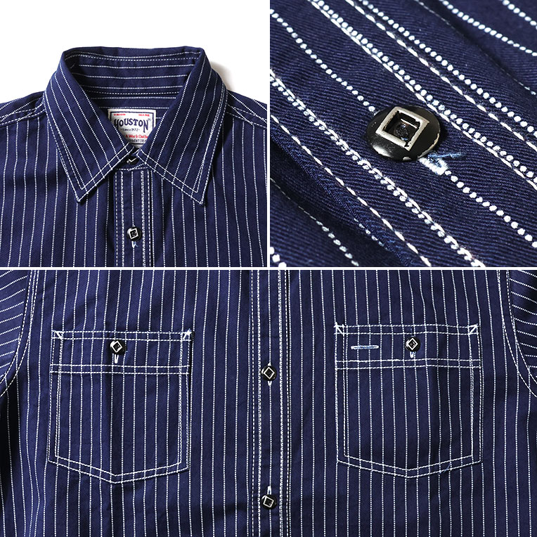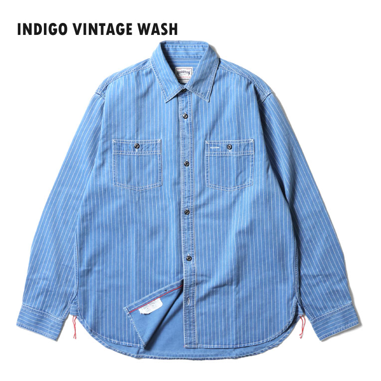 HOUSTON / ヒューストン 41259 INDIGO WABASH WORK SHIRT / インディゴウォバッシュワークシャツ -全2色- 長袖シャツ メンズ ミリタリー カジュアル 大きいサイズ ヴィンテージ ビンテージ ストライプ [41259]