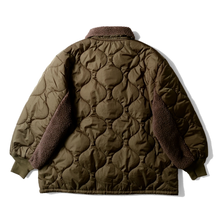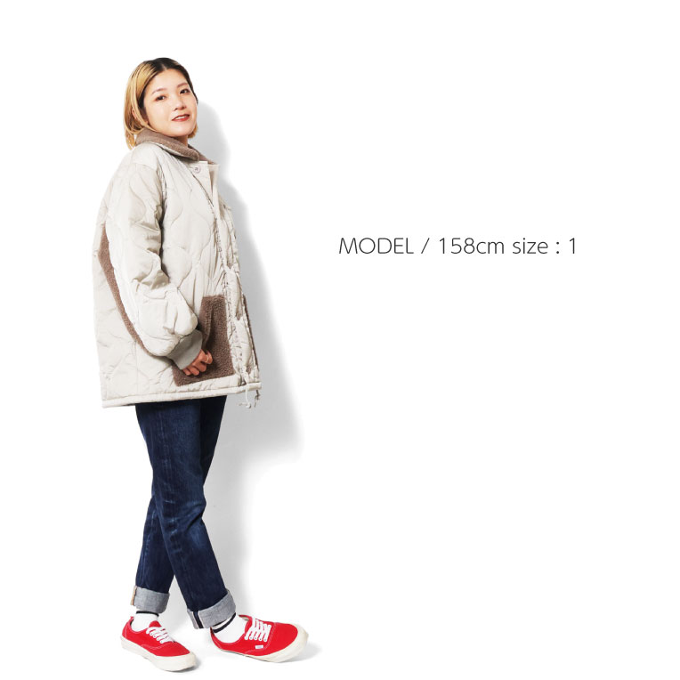 | 商品説明 | ナイロンリップストップにひょうたんキルトを施したボアカラージャケット。衿や腰ポケット、袖の切り替え部分にはシーズンムード高まるボアを使用。異素材の組み合わせが特徴的なスタイリングのメインになるアイテム。 |