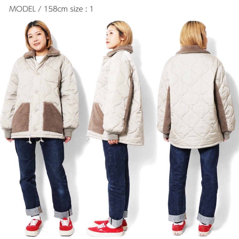 HOUSTON woman / ヒューストン ウーマン 5038W BOA COLLER QUILTING JACKET / ボアカラーキルティングジャケット -全3色- 無地 ひょうたんキルト 大きめ オーバーサイズ ヴィンテージ アメカジ ミリタリー [5038W]