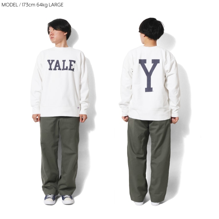 | 商品説明 | 脇にリブ切り替えの入った、裏起毛のリバースタイプのスウェット。贅沢にU.S.コットンを使用して編み立てています。 カレッジリバースの名品、YALE大学のロゴを、インクの浸透率を上げた、超染み込みプリントで再現しています。バックプリントあり。 こちらの商品は公式ライセンス商品です。海外での販売及び発送は対応しておりません。日本国内での限定販売となります。スウエット スエット |