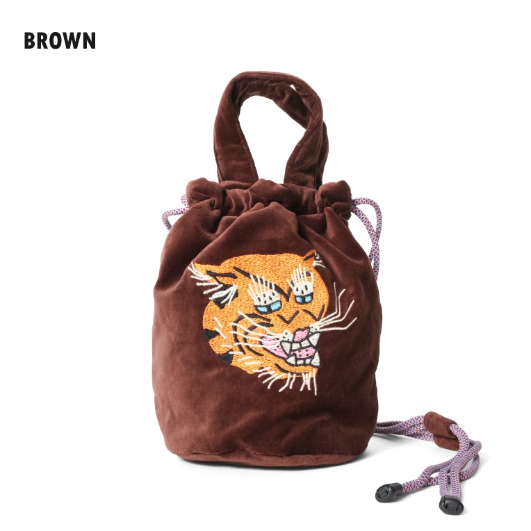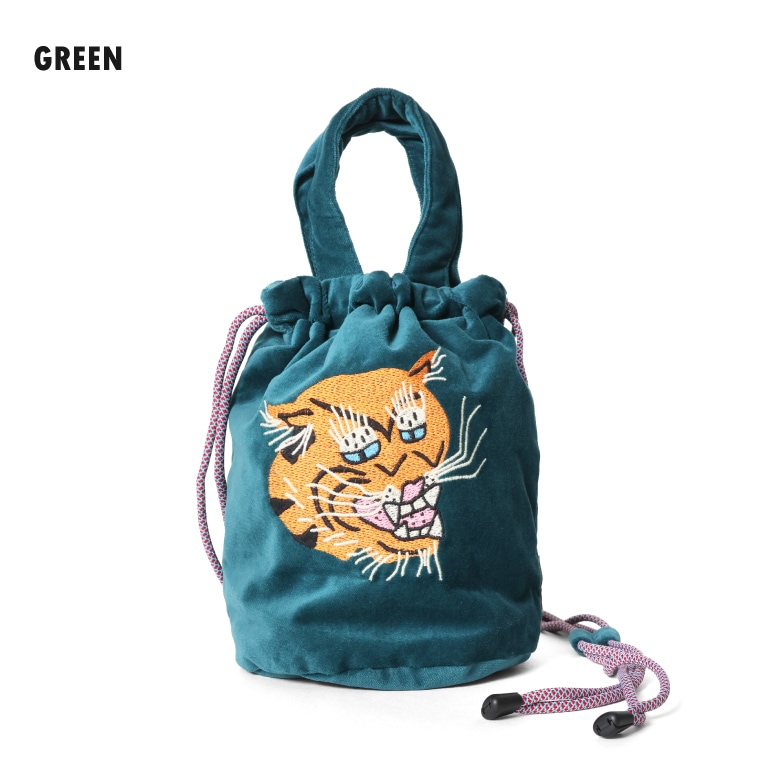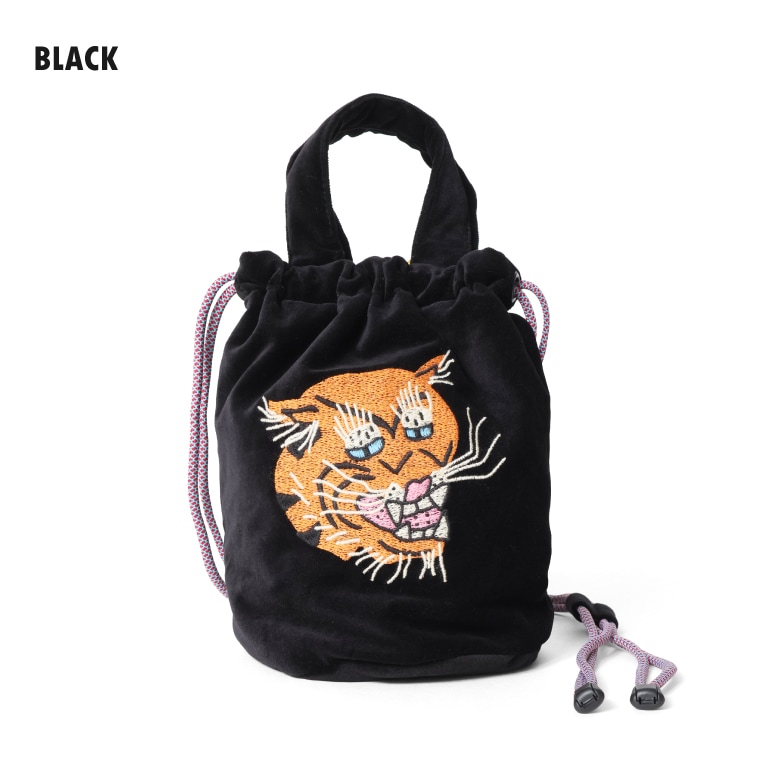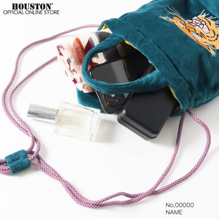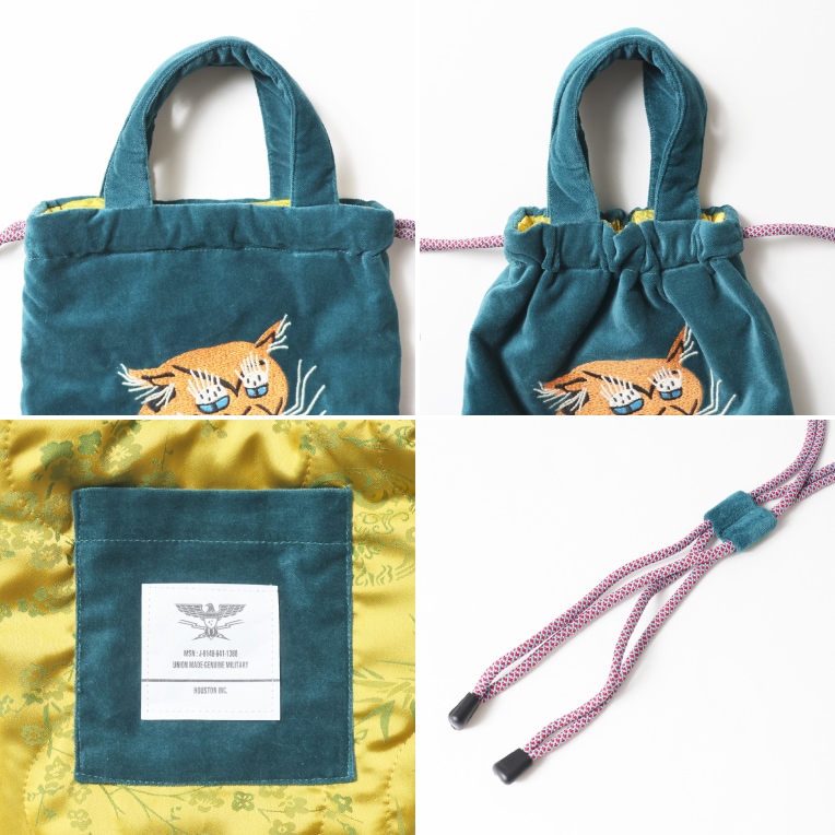 HOUSTON / ヒューストン 6898 VELVETEEN EFFECT BAG (TIGER) / 刺繍別珍エフェクトバッグ(虎) -全3色- メンズ レディース 男女兼用 手提げ袋 ショルダーバッグ ロゴ 肩掛けバッグ 巾着 2WAY ヴィンテージ ミリタリー ベトジャン [6898]