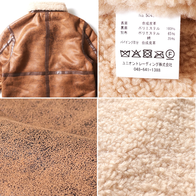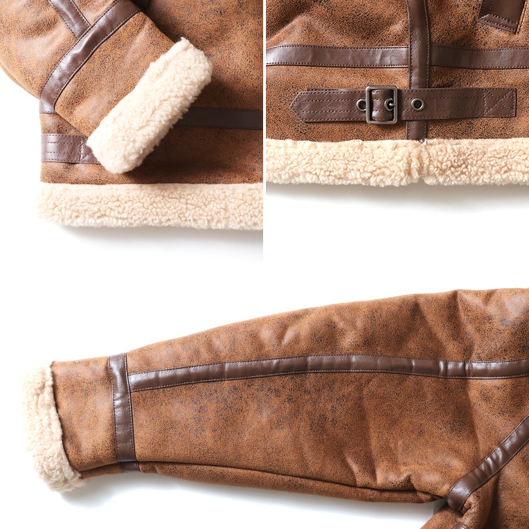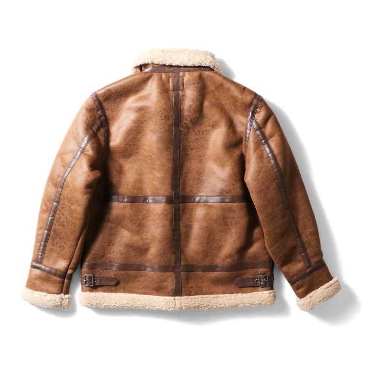 | 商品説明 | 優れた防寒性はそのままに、軽快に着用できる仕様のフェイクムートンB-3ジャケット。裏面は程よい毛足の長さで、肌に優しい柔らかい質感の裏ボアを採用。クラックレザーの風合いが、古着のような雰囲気がありこなれ感を演出。 |