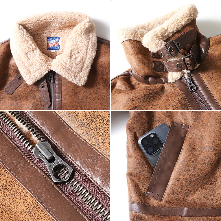 HOUSTON woman / ヒューストン ウーマン 5045W FAKE MOUTON B-3 JACKET / フェイクムートンB-3ジャケット -全2色- 無地 レディース クラックレザー バイカー 革ジャン ロック ヴィンテージ アメカジ ミリタリー [5045W]