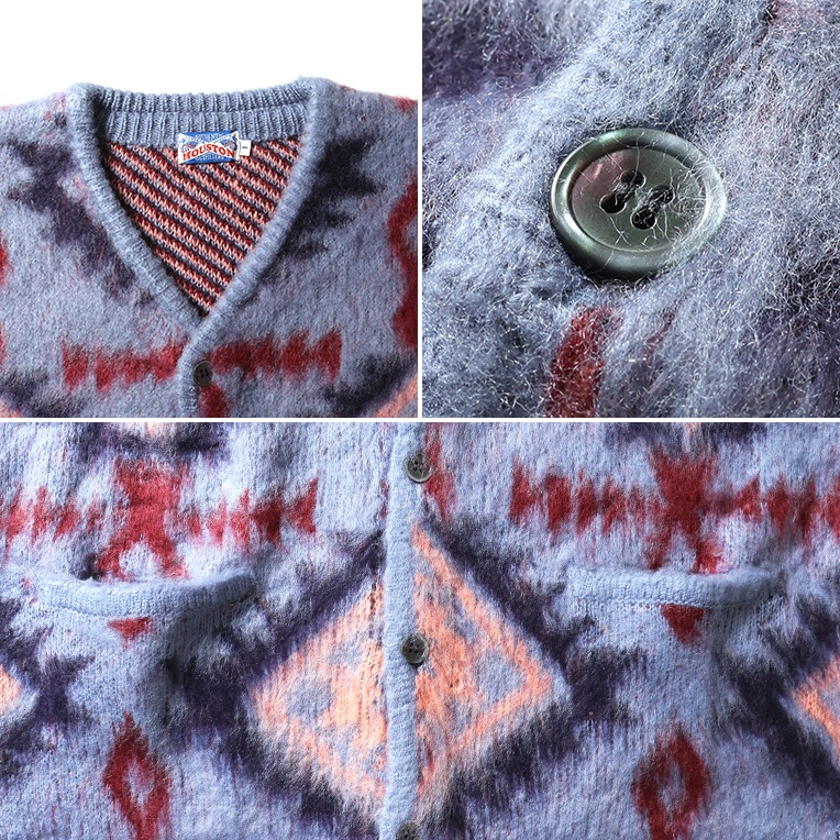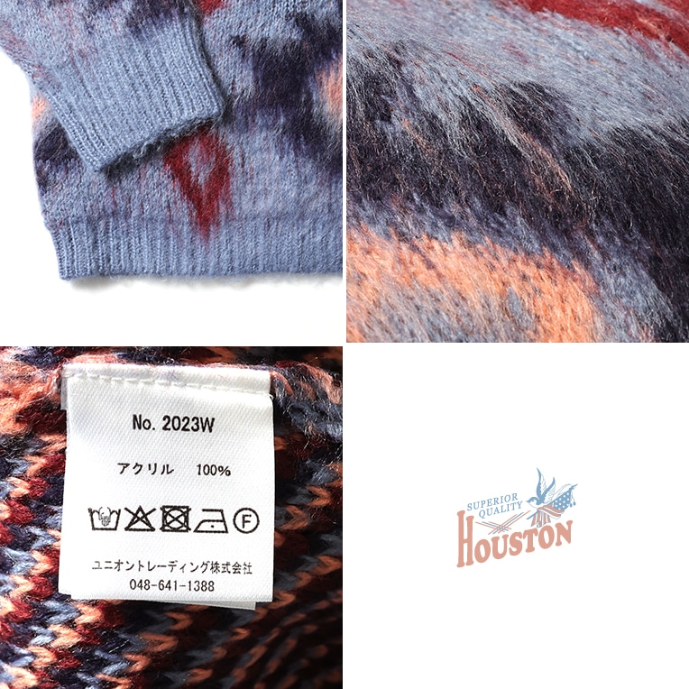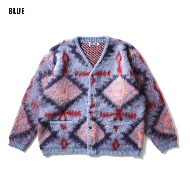 HOUSTON woman / ヒューストン ウーマン 2023W MOHAIR TOUCH CARDIGAN (NATIVE) / モヘアタッチカーディガン -全3色- ネイティブ柄 ニット レディース 羽織り 大きめ オーバーサイズ ヴィンテージ アメカジ ミリタリー [2023W]