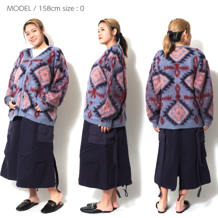 | 商品説明 | 肌触りの良い人気のモヘアタッチカーディガン。カジュアルスタイルと相性抜群な、鮮やかな配色が目を惹くネイティブ柄。ゆったりとしたシルエットで、どんなスタイルにも気軽に羽織れるいアイテム。 |