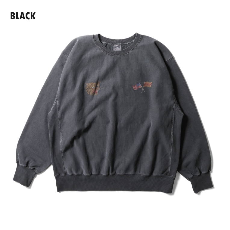HOUSTON / ヒューストン 22338 PIGMENT R/V SWEAT SHIRT (VIETNAM TIGER) / ピグメントスウェットシャツ -全4色- メンズ トレーナー アメカジ ミリタリー クラックプリント プリント ヴィンテージ 加工 虎 [22338]