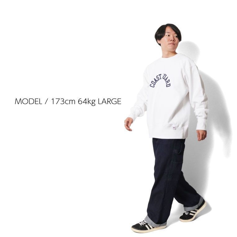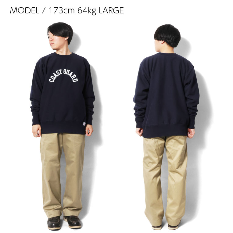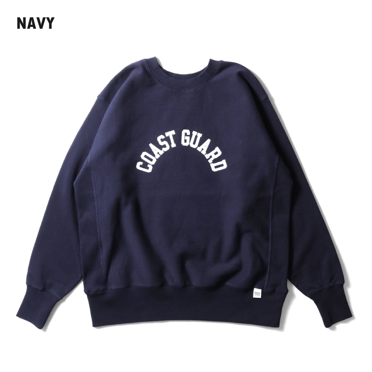| 商品説明 | 脇にリブ切り替えの入った、裏起毛のリバースタイプのスウェット。贅沢にU.Sコットンを使用して編み立てています。ミリタリーリバースの官給品系で最も人気の高い、COAST GUARD(沿岸警備隊)のアーチロゴをラバープリントで再現。オリジナルのネイビーカラーが加わった3色展開。 |