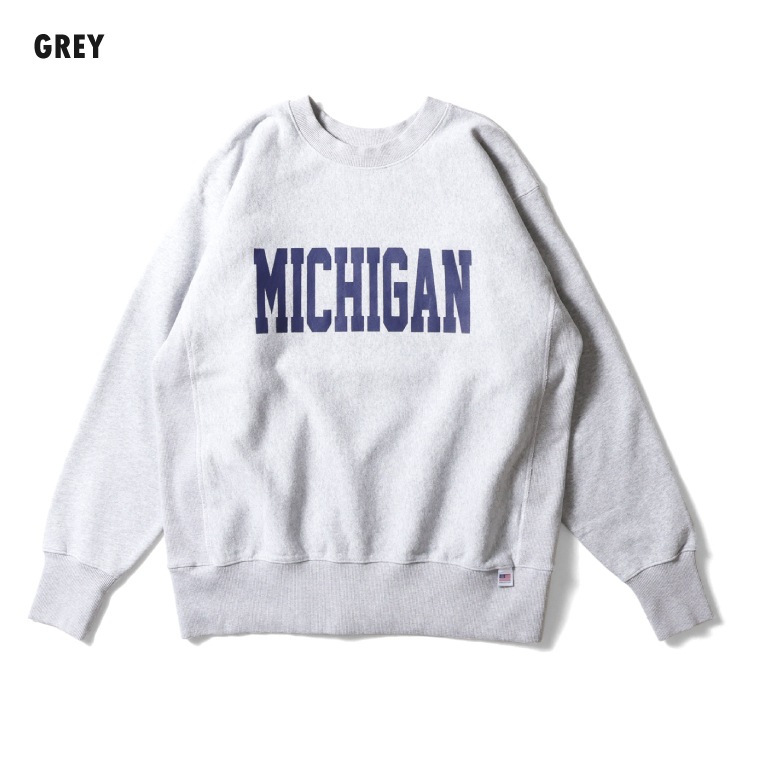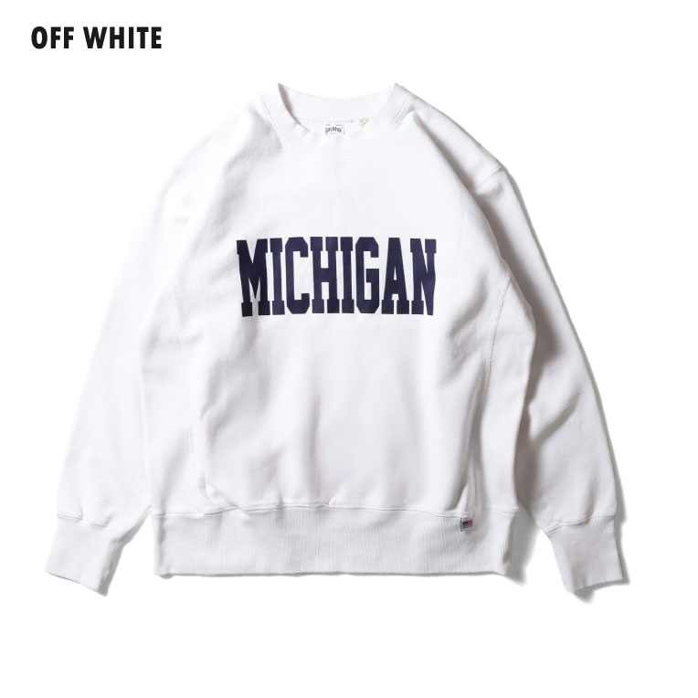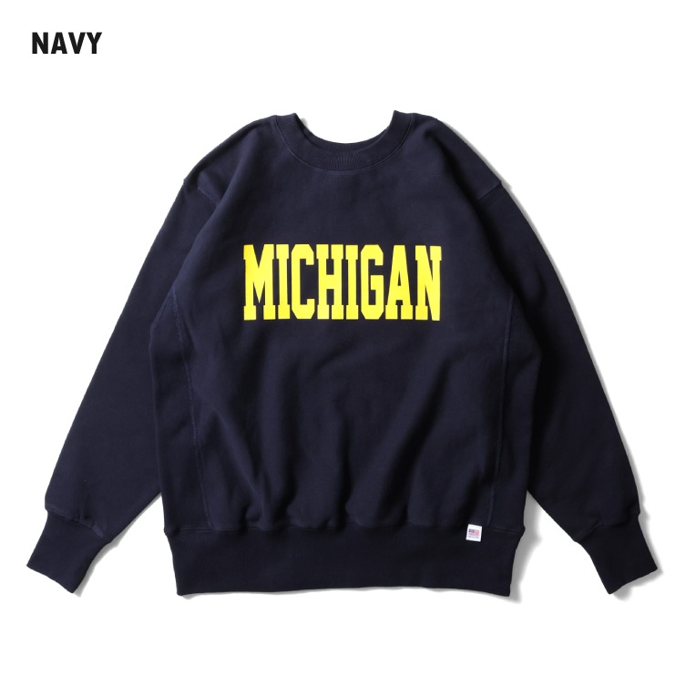 HOUSTON / ヒューストン 22375 PRINT U.S COTTON R/V SWEAT (MICHIGAN) / プリントスウェット -全3色- メンズ トレーナー アメカジ ミシガン リプロ カレッジロゴ ミリタリーリバース ミリタリー プリント ヴィンテージ 厚手 [22375]
