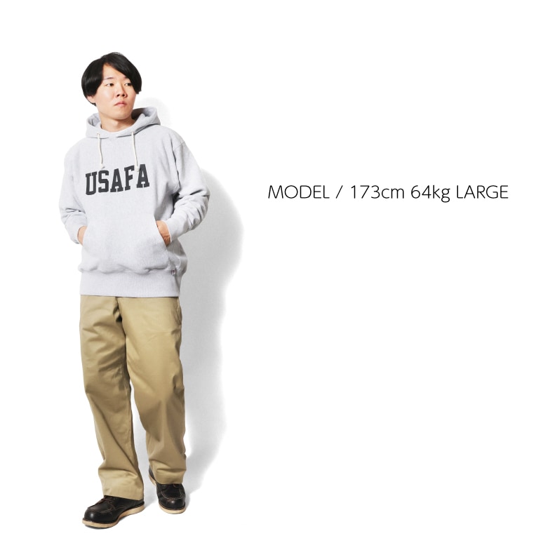 | 商品説明 | 脇にリブ切り替えの入った、裏起毛のリバースタイプのフーディー。贅沢にU.Sコットンを使用して編み立てています。再現性の難しい特徴的な杢感グレーは糸から選定し、できるだけ忠実にリプロダクト。コレクタブルピースな前後にリフレクタープリントの入ったUSAFAタイプ。※ネイビーのみリフレクタープリントを採用しています。 |