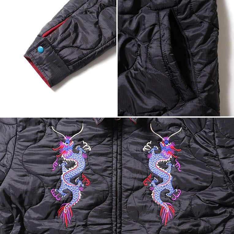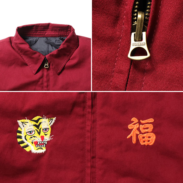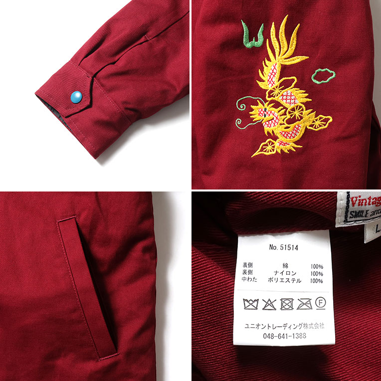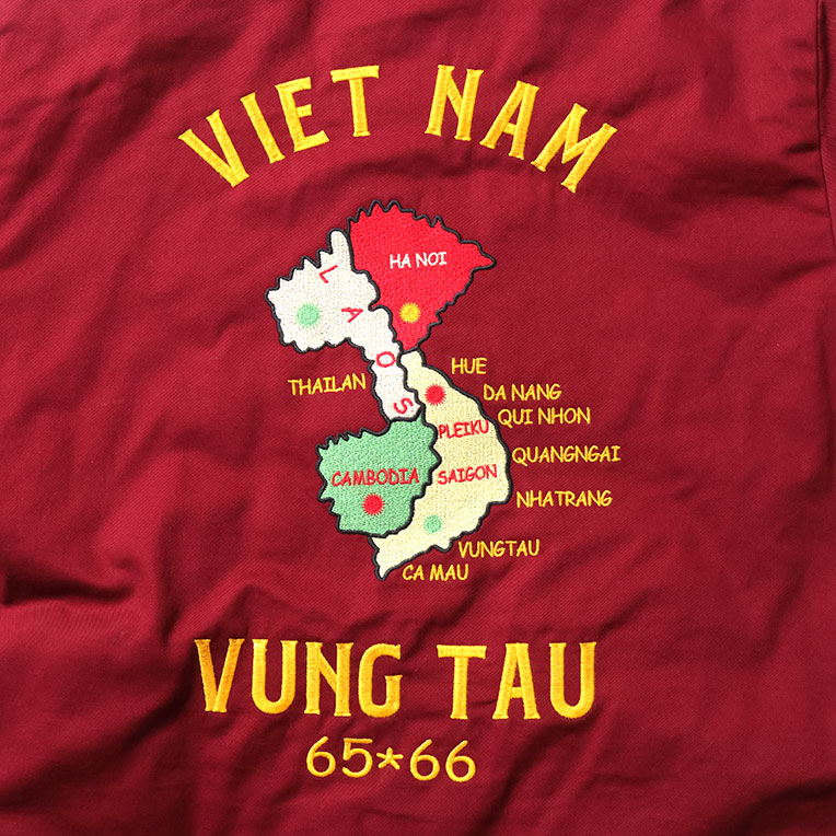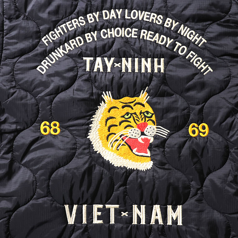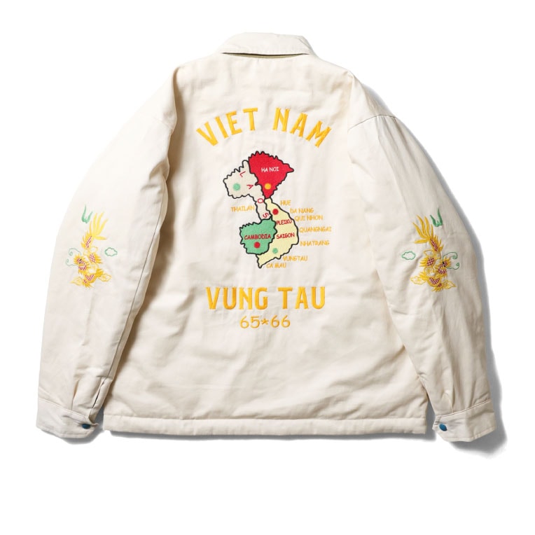 | 商品説明 | 肉厚で丈夫なコットンツイル生地と、高い耐久性を持つナイロンリップ生地を使用したリバーシブルベトジャン。ヴィンテージベトジャンの柄をイメージし、全体に大きくインパクトのある柄を手振りライクな刺繍で贅沢に両面に施している。 |