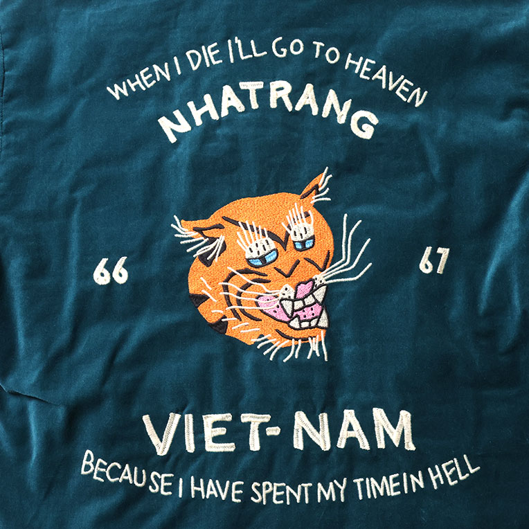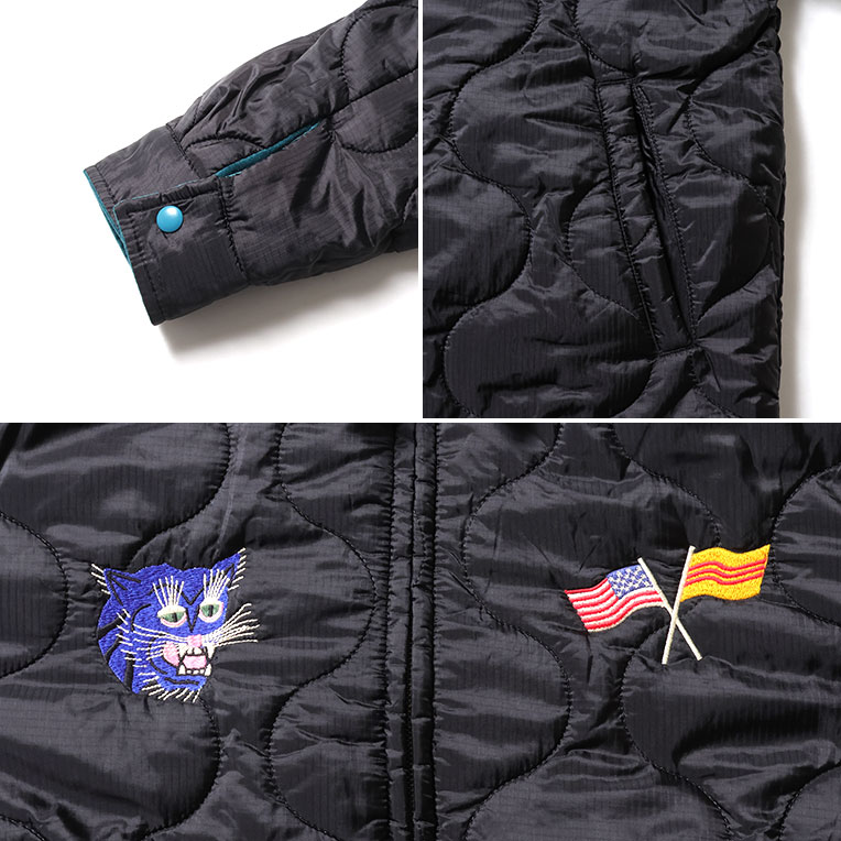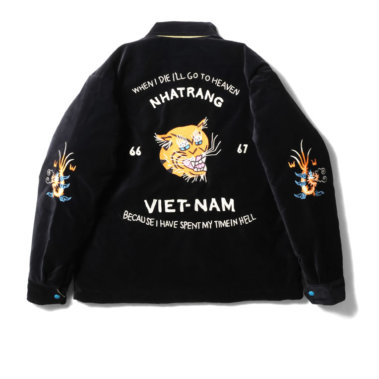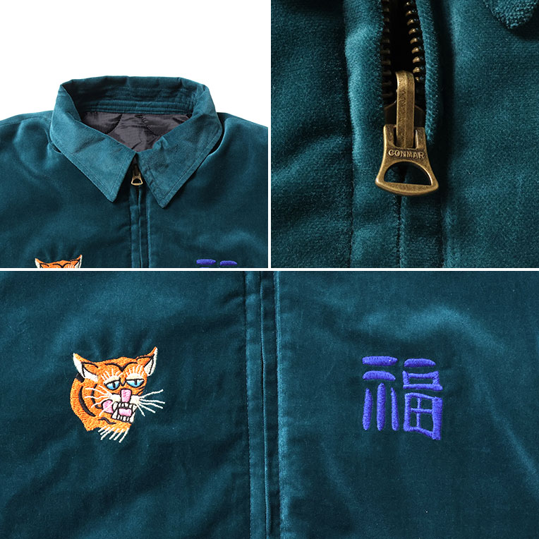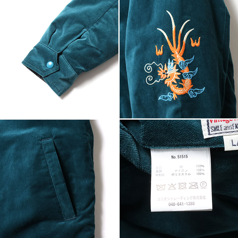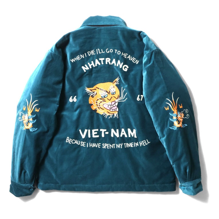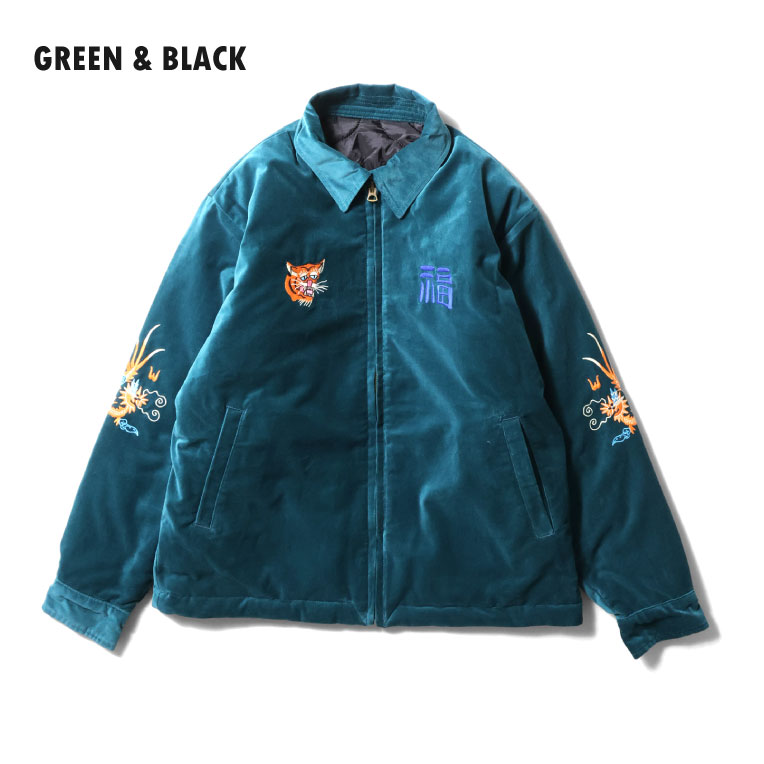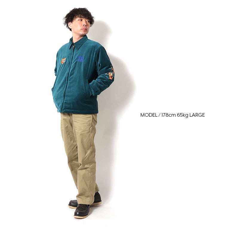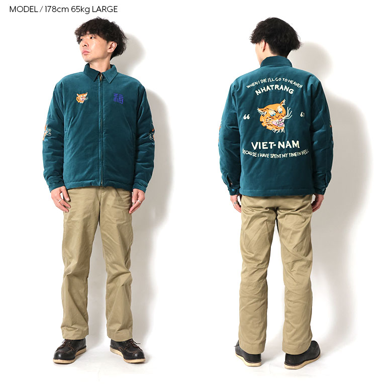 | 商品説明 | 高級感が感じられるヴィンテージライクな印象のコットン別珍と、高い耐久性を持つナイロンリップ生地を使用したリバーシブルベトジャン。ヴィンテージベトジャンの柄をイメージし、全体に大きくインパクトのある柄を手振りライクな刺繍で贅沢に両面に施している。 |