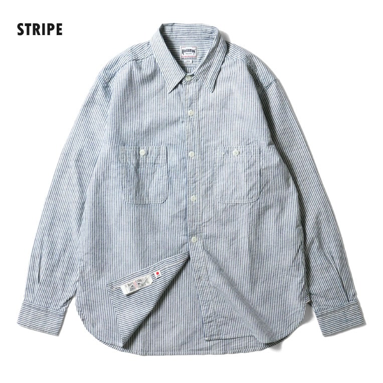 HOUSTON / ヒューストン 41257 SELEVEDGE CHAMBRAY SHIRT / セルビッジシャンブレーシャツ -全3色- 長袖シャツ メンズ ミリタリー カジュアル 大きいサイズ ヴィンテージ ビンテージ ストライプ チェック 無地 4.5oz [41257]