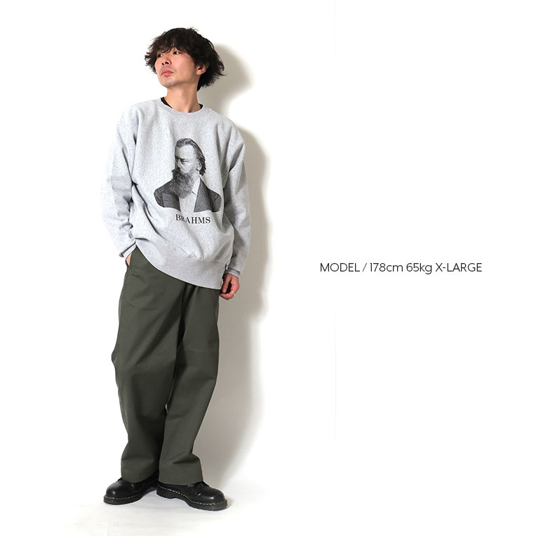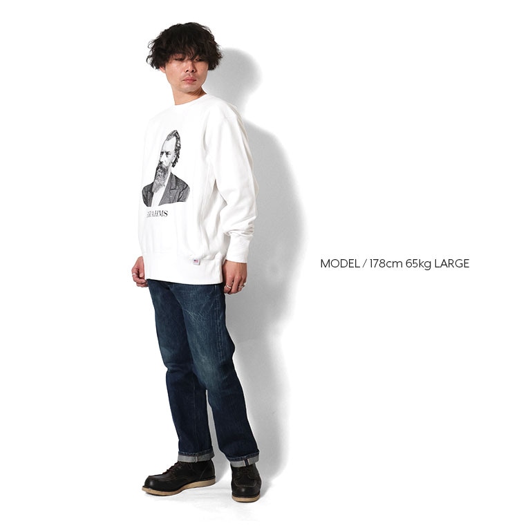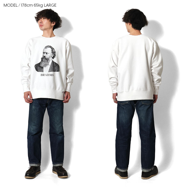 | 商品説明 | 脇にリブ切り替えの入った、裏起毛のリバースタイプのスウェット。贅沢にU.Sコットンを使用して編み立てています。ヴィンテージ市場では特に高値で取引されている、通称【THREE B'S】シリーズ。こちらはその中の一人のブラームスタイプ。60'sにアメリカのクラシック音楽のラジオのキャンペーンで製作されており、オリジナルボディにハイメッシュプリントで再現しています。スウエット スエット |