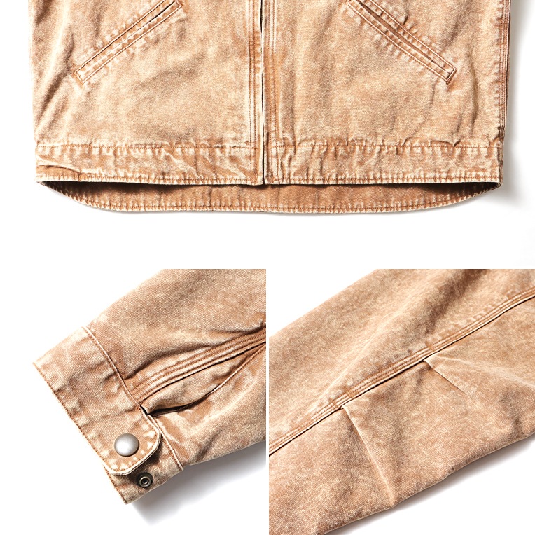 | 商品説明 | 柔らかなコットンキャンバス生地を使用したシンプルなシルエットのZIPワークジャケット。ケミカルウォッシュ(アシッドウォッシュ加工)を施すことで、全体にフェード感・メリハリ感を表現。着こむごとに自分だけの経年変化を楽しめます。 (※加工の特徴として、製品一点ごとに色合い、風合いが異なります) |