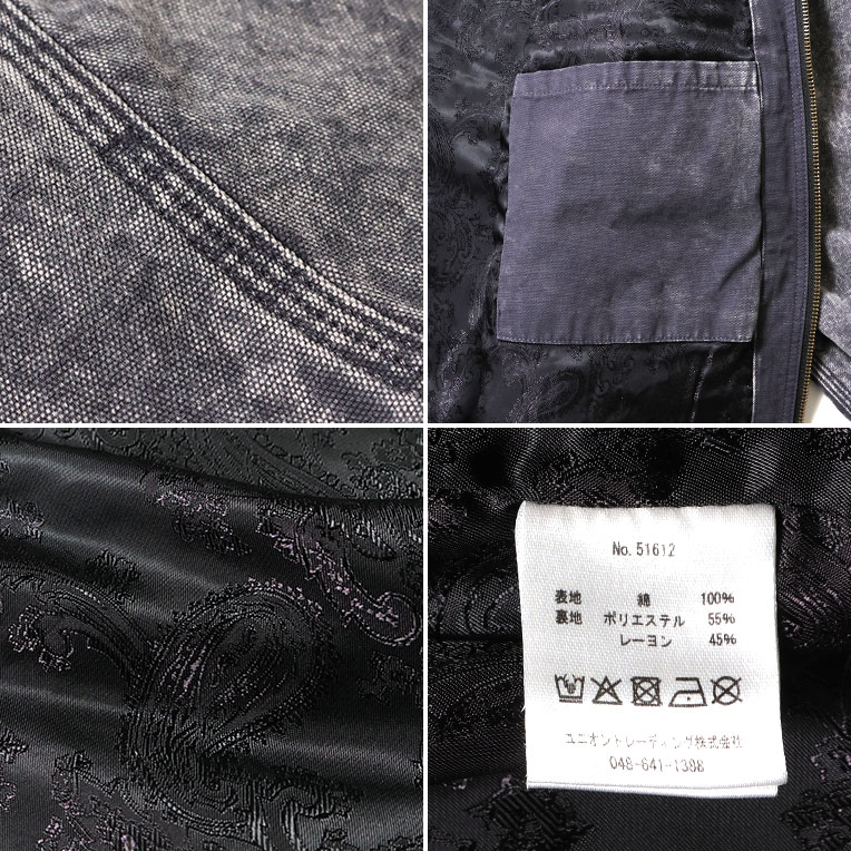 | 商品説明 | 柔らかなコットンキャンバス生地を使用したシンプルなシルエットのZIPワークジャケット。ケミカルウォッシュ(アシッドウォッシュ加工)を施すことにより全体にフェード感、メリハリのあるムラ感を再現。着込むごとに自分だけの経年変化を楽しめる。裏地には高級感があり肌触りの良いペイズリー柄の生地を使用。※加工の特徴として、製品一点ごとの色合いや風合いが異なりますので、あくまでご参考までにご確認ください。 |