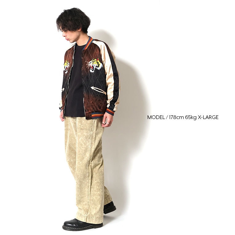 | 商品説明 | HOUSTONのスカジャシリーズで人気の高い虎柄を刺繍+プリントで表現。古着界隈でもあまり見られなくなったキルティング仕様のスカジャンを国内の特殊加工工場で部分的に日焼けによるフェード感を再現し、仕上げに柔軟加工と糊抜きワンウォッシュで、可能な限り生地のコシを抜いて長年着込んだようなクタクタな雰囲気を表現している。※職人による特別な一点物の加工製品ですので、大きく個体差がございますので、あくまでイメージ画像は参考までにご確認ください。 |