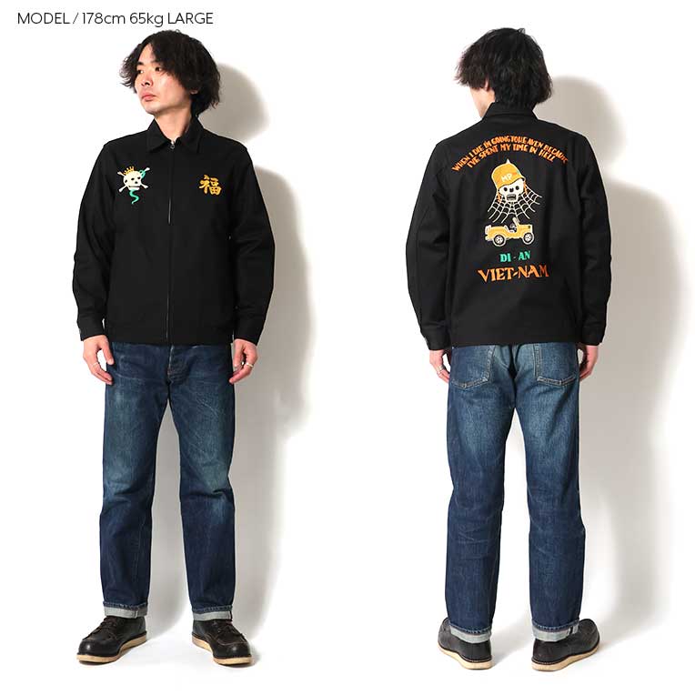 HOUSTON / ヒューストン 51577 VIETNAM JACKET(SKULL) / ベトナムジャケット -全3色- メンズ MILITARY アメカジ ビンテージ 大きいサイズ スカジャン ベトジャン 骸骨 ミリタリー[51577]
