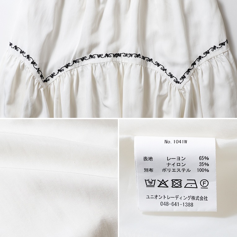 | 商品説明 | 生地感が柔らかく自然な落ち方のあるレーヨンナイロンを使用したウェスタンギャザースカート。インナースカートを備えたウエストゴム仕様の快適な履き心地で、適度なギャザー分量がさまざまアイテムとマッチ。刺繍をワントーンにすることで、華やかながら落ち着いた印象に仕上がっています。 |