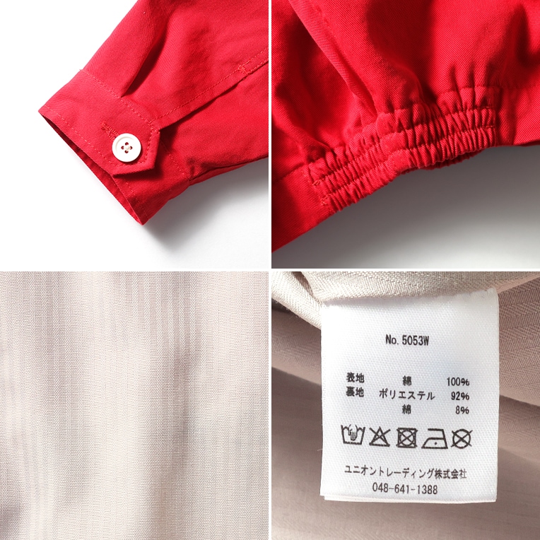 | 素材 | 表地 コットン100% / 裏地 ポリエステル92% コットン8% |
