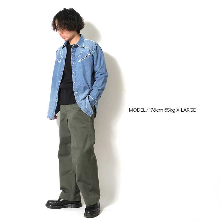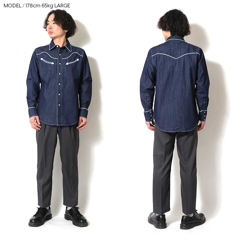 | 商品説明 | 生地感が柔らかく適度な落ち感のあるライトオンスデニムを使用したウエスタンシャツ。パール調のスナップボタンを使用し、胸ポケットなどの特徴的なディティールを取り入れている。ヨークの切り替えはデザイン性が高く、INDIGOをはじめ、加工を施したデニムはそれぞれの雰囲気に仕上げている。 |