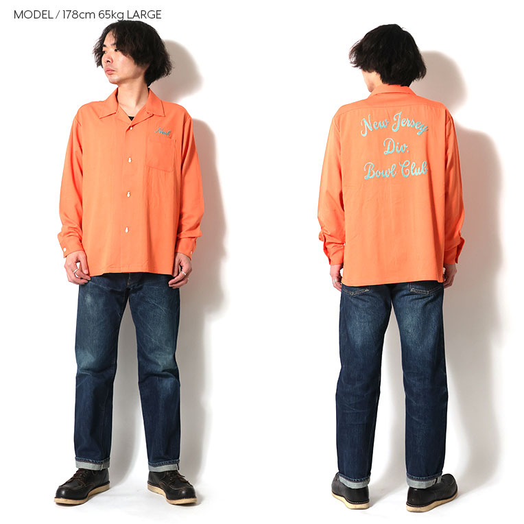 HOUSTON / ヒューストン 41299 BOWLING L/S SHIRT (NEW JERSEY) / 長袖ボウリングシャツ -全3色- メンズ アメカジ ボーリング ビンテージ オープンカラー 刺繍 大きいサイズ[41299]