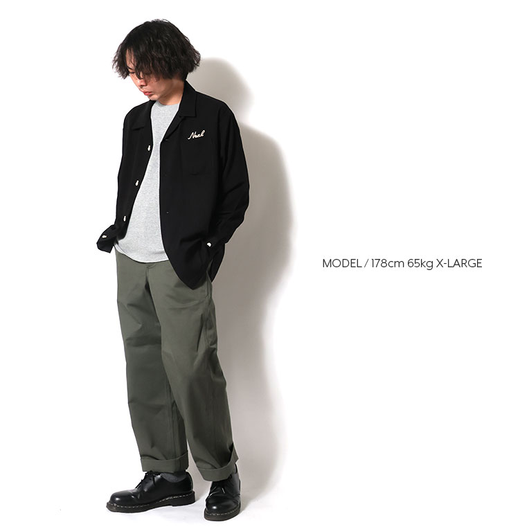 | 商品説明 | HOUSTON春夏定番のボウリングシャツの長袖タイプが登場。生地には適度な厚みのレーヨン100%を使用し、暑い季節にぴったりなさらっとした着心地。こだわりのボウリングピンボタンもオリジナルで作成。チェーン刺繍には50年代ヴィンテージボウリングシャツにありそうな、クラシックなデザインの「NEW JERSEY」柄を採用。 |
