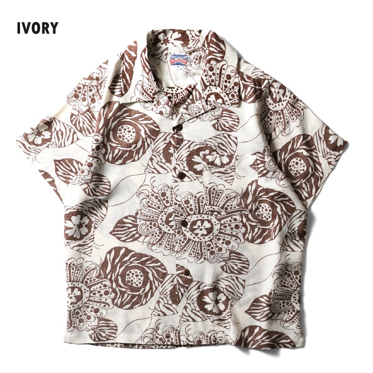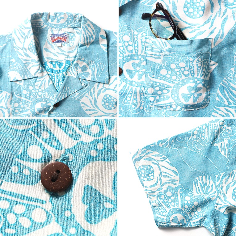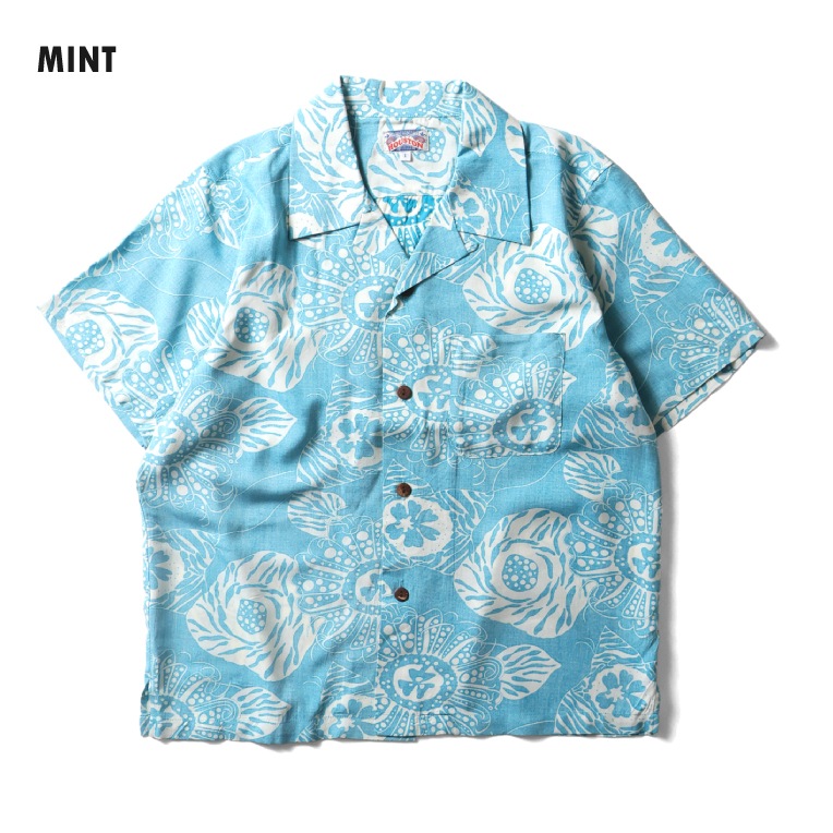 HOUSTON woman / ヒューストン ウーマン 4050W RAYON ALOHA SHIRT (BOTANICAL) / レーヨンアロハシャツ -全3色- 総柄 半袖シャツ 裏使い ボタニカル ハワイアンシャツ ヴィンテージ アメカジ ミリタリー [4050W]