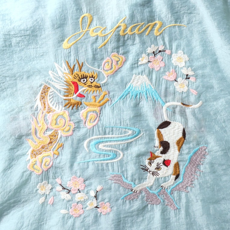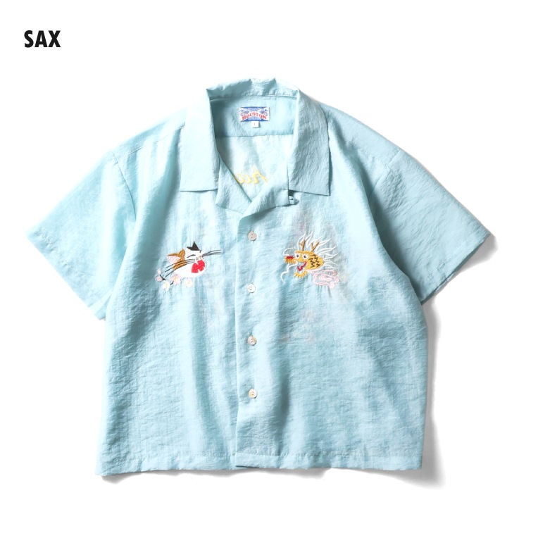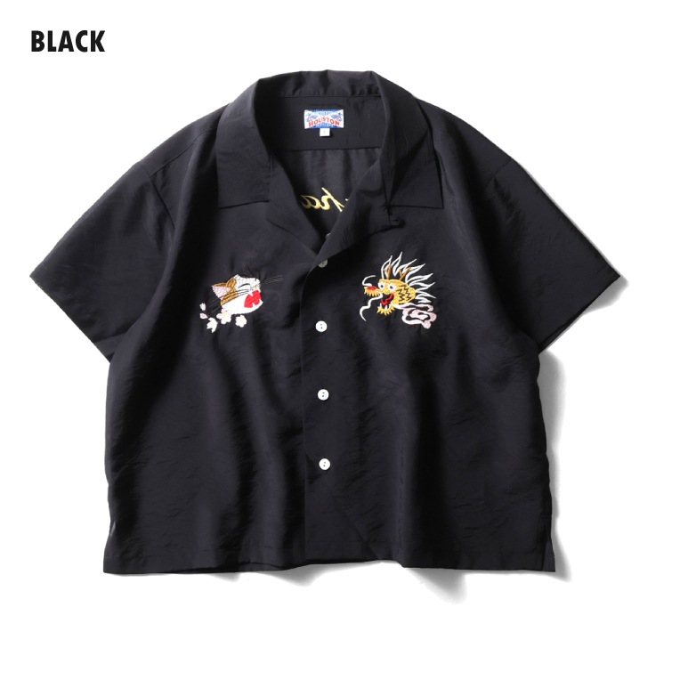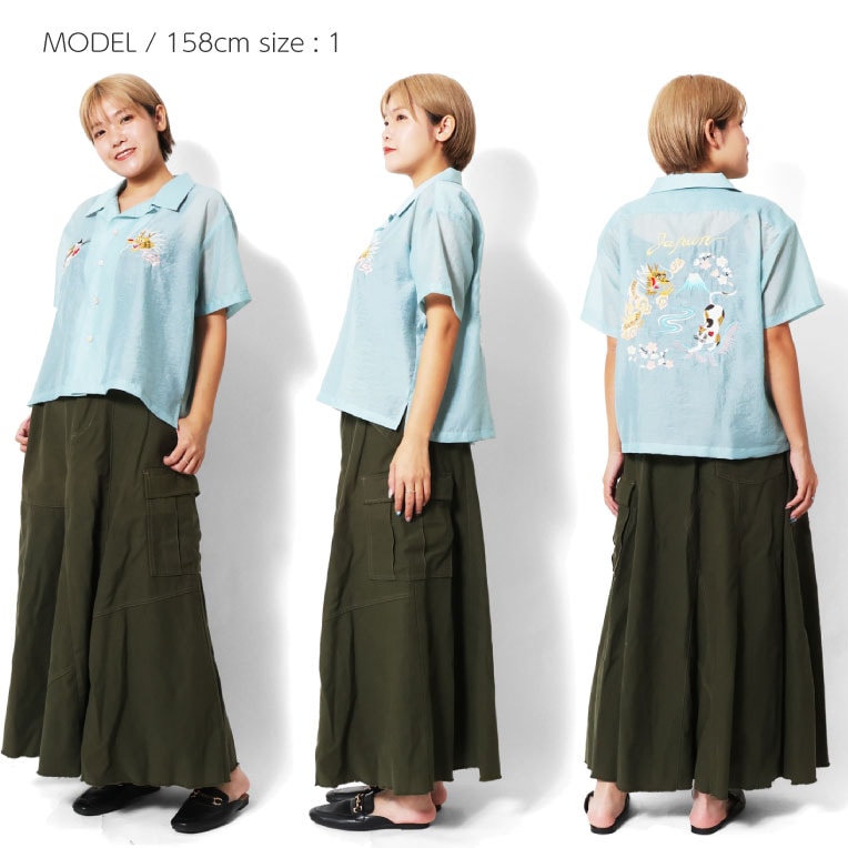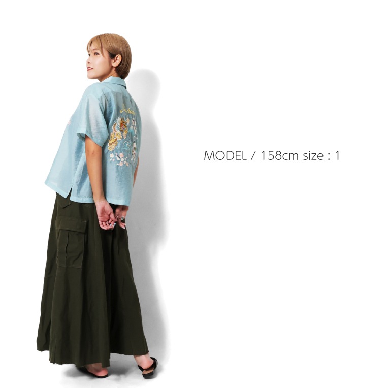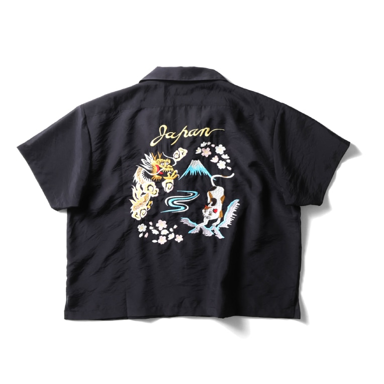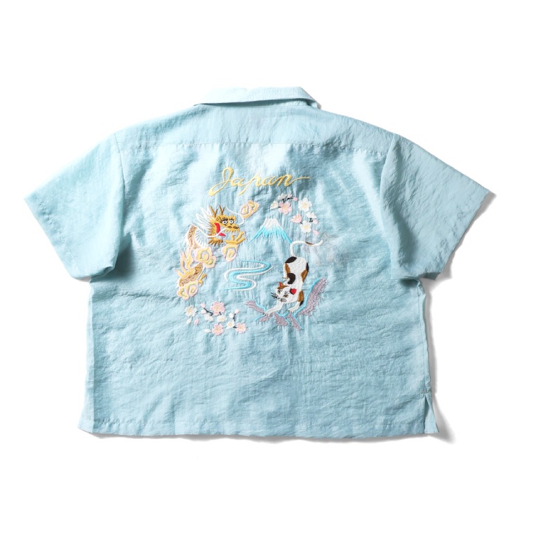 | 商品説明 | 薄くて軽い上品な透け感と、独特な光沢感、弾力性が特徴的なオーガンジーを採用したスーベニアシャツ。短めな着丈に設定し、ゆとりあるシルエットで暑い夏でも着やすいアイテムに仕上げました。背中の刺繍には龍・猫を配置し、日本らしいポップな刺繍を施した新しいスーベニアシャツです。 |