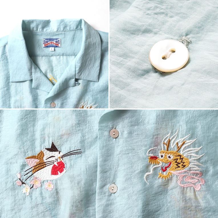 HOUSTON woman / ヒューストン ウーマン 4058W SHEER SOUVENIR SHIRT (JAPAN) / シアースーベニアシャツ -全3色- 刺繍 透け感 半袖シャツ 短丈 短め ショート丈 ヴィンテージ アメカジ ミリタリー ネコ 日本 [4058W]