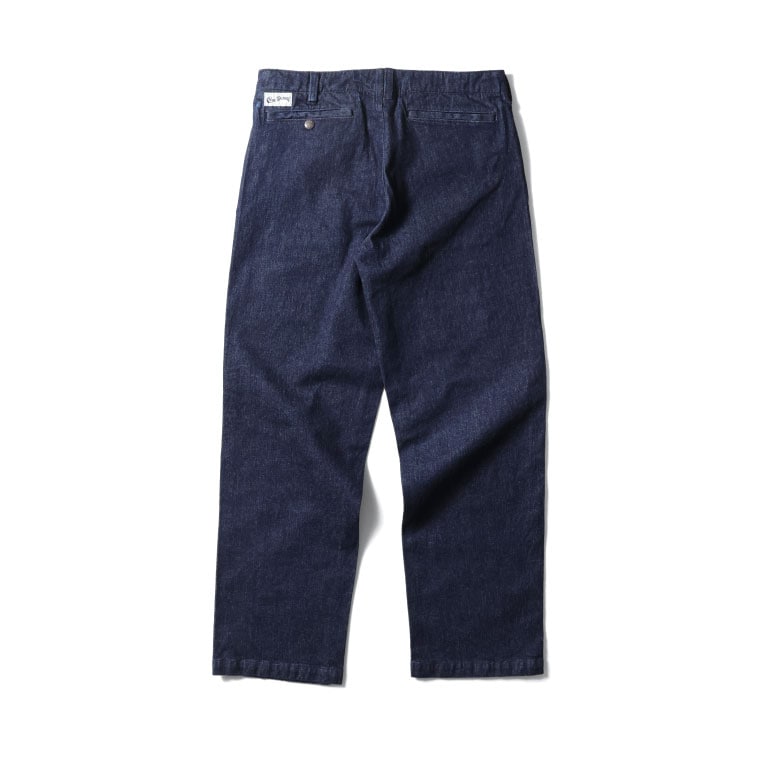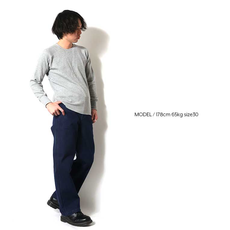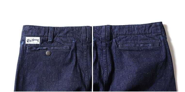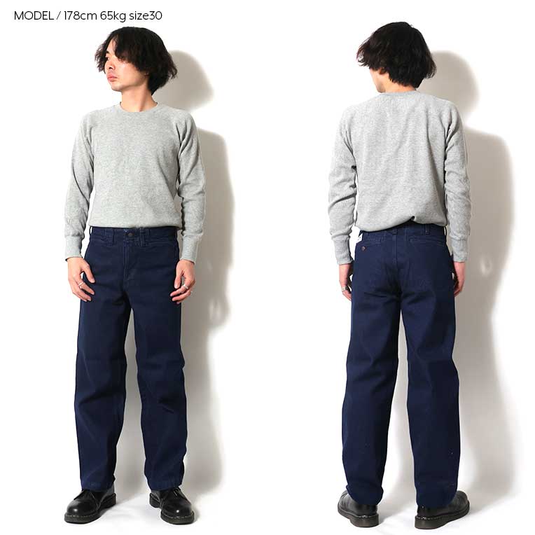 | 商品説明 | CONE DENIM社の12.5ozデニムを使用したフリスコジーンズ。古いワークパンツらしいワイドなストレートシルエット。弧を描くようなL字型にカーブしたポケットと、着脱しやすいトップのスナップボタンのディティールが特徴的。フリスコとはサンフランシスコの略称で、そこで働く労働者向けの作業用パンツとして誕生した。 |