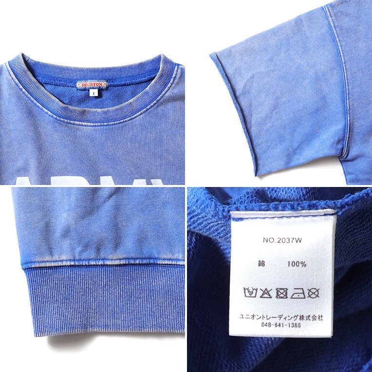 HOUSTON woman / ヒューストン ウーマン 2037W FADE PILE S/S PULLOVER (ARMY) / フェードパイルプルオーバー -全3色- オーバーサイズ 加工 ドロップショルダー 色落ち ユーズド加工 ヴィンテージ アメカジ ミリタリー [2037W]