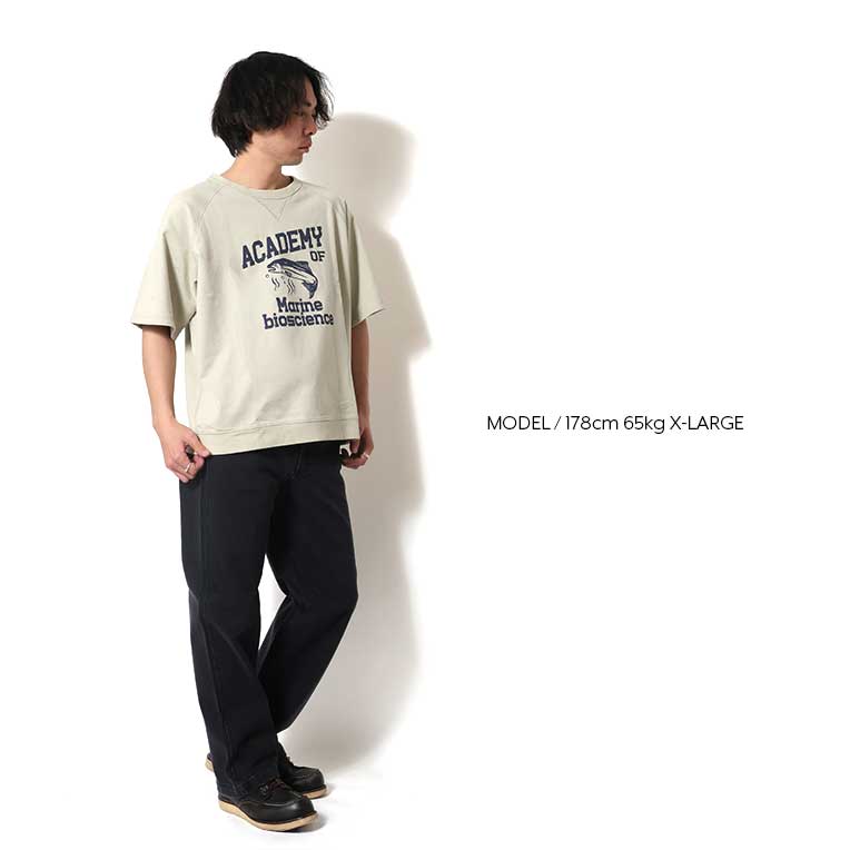 | 商品説明 | ルーズなサイジングのハーフスリーブスウェット。スノーウォッシュ加工を施し、ユーズドのようなこなれ感のある表情に仕上げている。カレッジテイストな研究チームのロゴをプリント。 ※加工の特徴として、製品一点ごとに色合いや風合いが異なります。商品ページはあくまでご参考までにご確認ください。 |