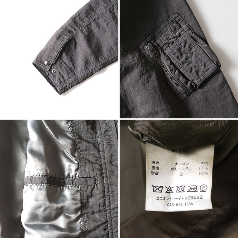 | 商品説明 | 肉厚なヘビーナイロンツイル生地を使用し、ガーメントダイを施したハンティングジャケット。製品染めによって、特徴的なアタリとパッカリングが生まれた生地はヴィンテージのような風合い。MA-1を彷彿とさせるディティールを入れミリタリー感をプラス。 |