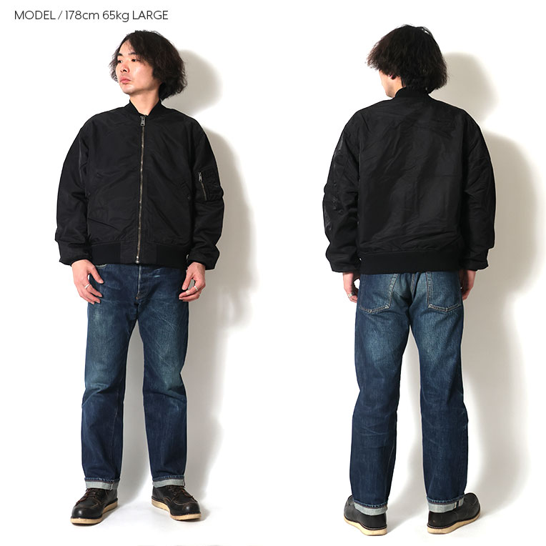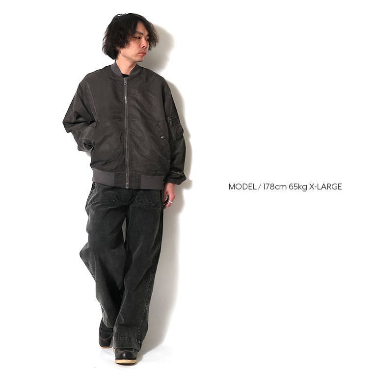 | 商品説明 | 肉厚なヘビーナイロンツイル生地を使用し、ガーメントダイを施したMA-1。製品染めによって、特徴的なアタリとパッカリングが生まれた生地はヴィンテージのような風合い。ワイドな作りで、インナーのサイズ感を気にせず着用が可能。 |