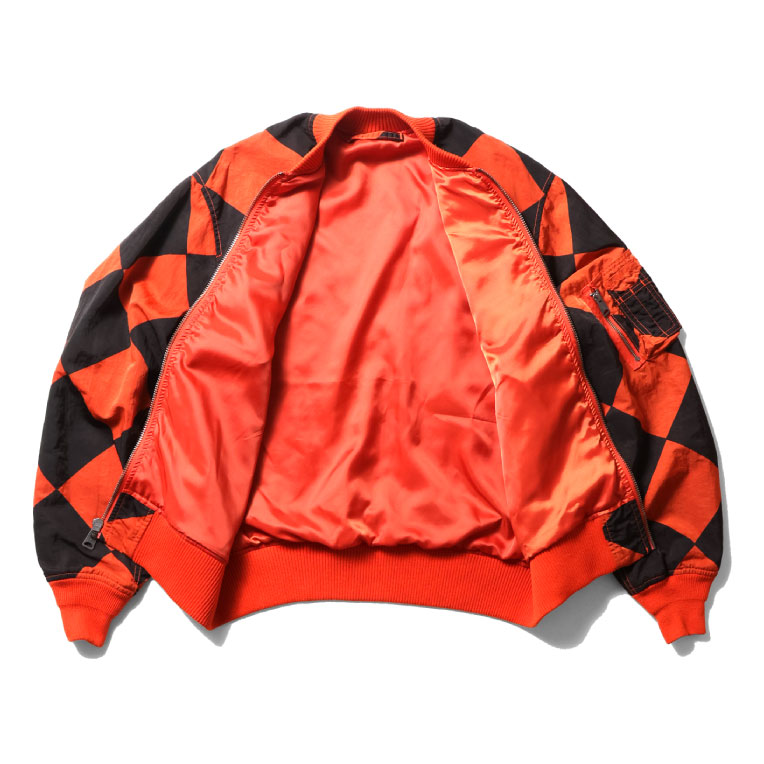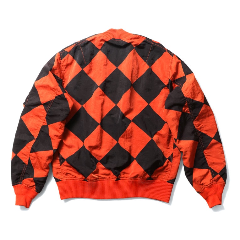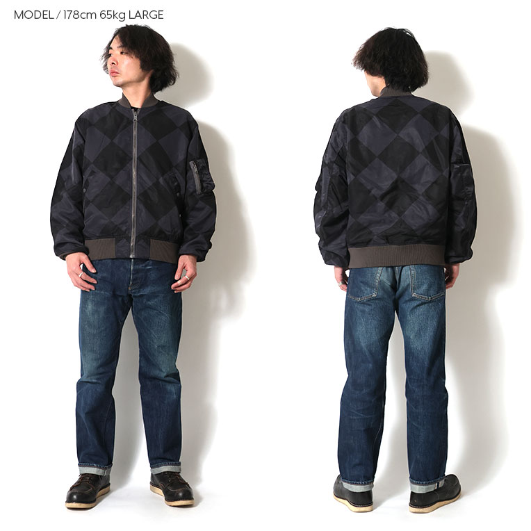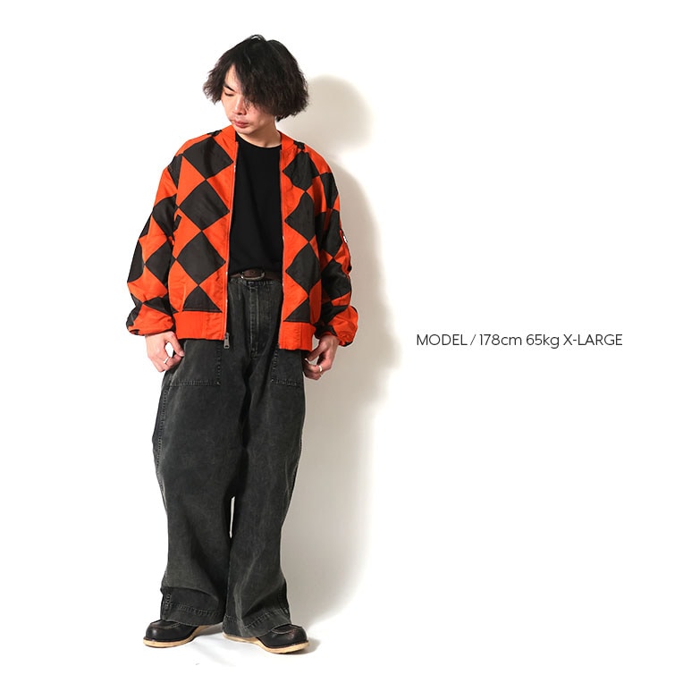 | 商品説明 | 肉厚なヘビーナイロンツイル生地を使用し、ガーメントダイを施したラインクルーマンMA-1。アメリカ空軍の滑走路で航空機の誘導を行うラインクルーマンが着用していたジャケットをサンプリングし、馴染みのあるMA-1に落とし込んだハイブリッドモデル。最終工程に製品染めをトッピングすることで、市松模様のプリントがボディーカラーと馴染み雰囲気のある一着に仕上がっている。 |